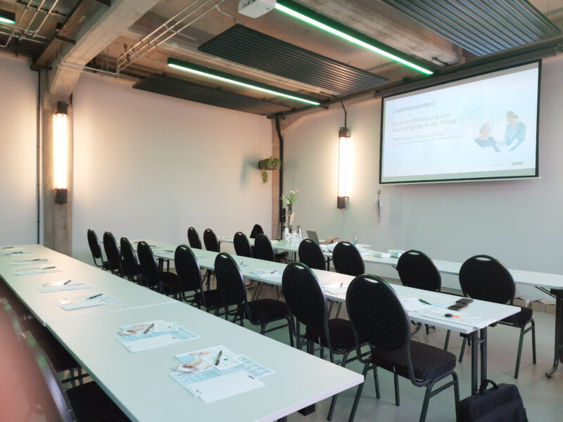 In unserem FARWERK fand am 04.02.2026 ein Seminar unseres Mieters Hilfsmittel Robbert statt. Für eine Schulung für Pflegende und Pflegeeinrichtungen zum Thema Kontinenzförderung vermieteten wir unseren kleinenTagungsraum inklusive Präsentations-, Licht- und Tontechnik. Unser Catering-Partner „Zur Zeile“ füllte das Buffet mit leckerem Fingerfood und Canapes.