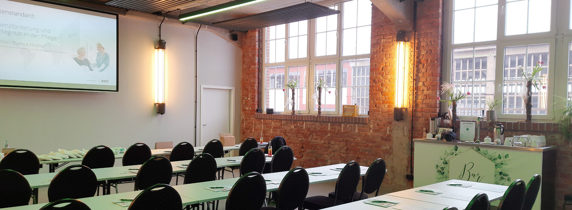 In unserem FARWERK fand am 04.02.2026 ein Seminar unseres Mieters Hilfsmittel Robbert statt. Für eine Schulung für Pflegende und Pflegeeinrichtungen zum Thema Kontinenzförderung vermieteten wir unseren kleinenTagungsraum inklusive Präsentations-, Licht- und Tontechnik. Unser Catering-Partner „Zur Zeile“ füllte das Buffet mit leckerem Fingerfood und Canapes.